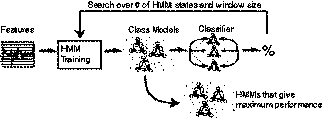 Figure 2 Overview of the Baseline System: 24 dimensional A/V features sampled at 5Hz enter the training pipeline at the left. HMMs are trained with varying numbers of states and window sizes. The HMMs that give maximum testing performance are selected.