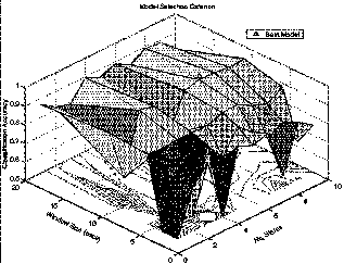 We selected the parameters using brute force search over a range of state counts and window sizes. Using classification accuracy as the selection criterion we iterated over state counts from 1-10 and window sizes from 2-20 secs. See Figure 2 for a flow diagram of the training procedure just described and Figure 3 for an example of a criterion surface.