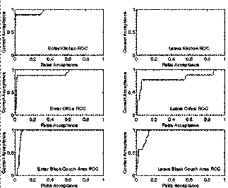 The events 1-6 were labeled with impulses in time. For example when the user entered the kitchen, he marked the moment he passed through the doorway by pressing the label button on the handheld touch pad. See Table 2 for the number of labels collected for each event. For each of the events we partitioned the sets into separate training sets and testing sets.