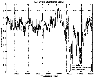 Figure 7 Leave Office Classification: This class achieved the worst classification performance of all the classes and it used a 8 state HMM trained on 20 sec feature windows. This figure shows approx. 1 hr. of performance on the test set.